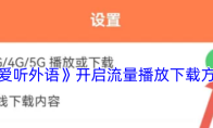 若想在爱听外语APP中开启流量下载与播放功能,可打开APP后点击界面右下角的【我的】按钮,进入个人页面后选择【设置】选项,在设置菜单中找到并开启【使用3G/4G/5G播放或下载】的