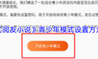 阅友小说设置青少年模式可先打开官方APP,点击右下角“我的”进入个人页面,再点击右上角设置图标,在设置页面中找到“青少年模式”选项并点击进入,点击“开启青少年模式”后按提示设置独立