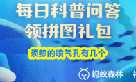 须鲸的喷气孔有几个?【神奇海洋】11月12日新题目已开答!正确答案现已公布,点击领取拼图,一起为修复海洋生态贡献力量!今日正确答案是:【一位法国探险家】。鲸用肺呼吸,所以隔一段时间