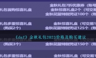 dnf金秋礼包2023价格是338元,dnf2023年金秋礼包比较建议玩家购买上三套,购买三套之后是能额外的获取到对应的花篮,同时上面的套装是很不错的,玩家就可以根据自己的喜好来进