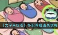 文字来找茬是一款休闲文字类的益智闯关小游戏,玩家可以在游戏当中进行各种闯关解谜的操作,今天小编给大家带来了游戏中怀旧养胎的通关攻略,有兴趣的小伙伴一起来看看吧。 文字来找茬怀旧养胎