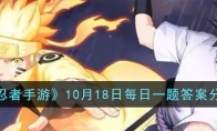 火影忍者手游中10月18日每日一题答案是什么,相信还有很多游戏玩家不清楚具体答案是什么,下面小编给大家分享一下游戏微信公众号中10月18日每日一题答案,有需要的小伙伴一起来看看吧,