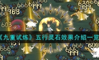 九重试炼是一款十分火爆的手游,其中五行灵石是九重试炼中的稀有道具,同时镶嵌多个相同类型的灵石,还能触发强力的天道效果,那么九重试炼五行灵石效果都有哪些呢?希望对感兴趣的玩家有所帮助