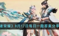 王者荣耀游戏中8月17日每日一题答案是什么,相信还有很多游戏玩家不清楚具体答案是什么,下面小编给大家分享一下微信公众号8月17日每日一题答案,有需要的小伙伴一起来看看吧,希望能够有