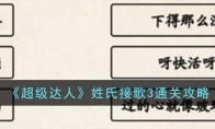 超级达人是一款充满趣味和挑战的休闲小游戏,游戏的内容非常有趣精彩,游戏中有着非常丰富的关卡,玩家需要在各个不同的关卡中来进行各种挑战,今天小编给大家分享一下游戏中姓氏接歌3的通关攻