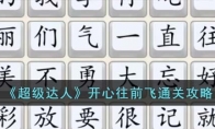 超级达人是一款充满趣味和挑战的休闲小游戏,游戏的内容非常有趣精彩,游戏中有着非常丰富的关卡,玩家需要在各个不同的关卡中来进行各种挑战,今天小编给大家分享一下游戏中开心往前飞的通关攻