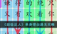 超级达人是一款充满趣味和挑战的休闲小游戏,游戏的内容非常有趣精彩,游戏中有着非常丰富的关卡,玩家需要在各个不同的关卡中来进行各种挑战,今天小编给大家分享一下游戏中单身理由的通关攻略