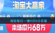 淘宝大赢家每日一猜活动持续更新,8月8日的题目是“【黄金12秒】地震来临时,快速自救有几个要点”,答案是:3。一旦发生破坏性地震,留给每个人的时间只有大约12秒,这12秒被称为黄金