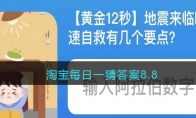 【黄金12秒】地震来临时,快速自救有几个要点?正确答案是3。淘宝大赢家活动是许多小伙伴每天都会参与的,通过参与淘宝大赢家活动进行答题,回答正确后就能领取到免费的红包奖励。2023淘