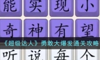 超级达人是一款趣味十足的休闲益智类游戏,游戏的内容非常有趣精彩,玩家可以在这里体会趣味十足的全新精彩挑战。游戏里有很多好玩的关卡,今天小编给大家分享一下游戏中勇敢大爆发的通关攻略,