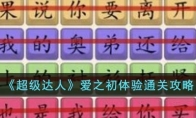 超级达人是一款趣味十足的休闲益智类游戏,游戏的内容非常有趣精彩,玩家可以在这里体会趣味十足的全新精彩挑战。游戏里有很多好玩的关卡,今天小编给大家带来的是游戏中爱之初体验通关攻略。有