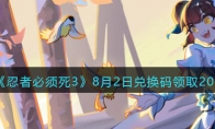 忍者必须死3游戏2023年8月2日兑换码是:武道大会龙腾虎跃。游戏中大家可以使用兑换码领取免费的福利,目前官方已经发放了不少新兑换码,想要领取2023年8月2日忍者必须死3兑换码的
