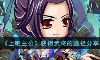 上吧主公是一个Q版三国大型战争策略游戏。游戏以经典的策略类游戏SLG为核心玩法,同时加入了大量卡牌类游戏,为玩家打造出一个战火缤纷的三国世界。今天小编给大家带来的是游戏中获得武将的