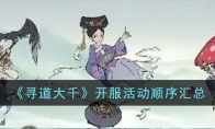 寻道大千游戏中开服之后是有着非常多的活动的,每一个新区的活动都是完全一样的,在新的服务器中会有大量的福利活动一些玩家可能还不知道,下面小编给大家带来了开服活动顺序汇总,有兴趣的小伙