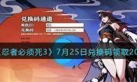 忍者必须死3游戏2023年7月25日兑换码是:怒鲤双刀震撼出世。游戏中大家可以使用兑换码领取免费的福利,目前官方已经发放了不少新兑换码,想要领取2023年7月25日忍者必须死3兑换