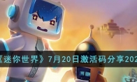 迷你世界是一款高度自由的休闲类3D沙盒游戏,游戏每日都会为我们带来游戏激活码,我们领取激活码之后就可以兑换奖励。下面小编给大家带来7月20日的激活码介绍,有需要的小伙伴一起来看看吧