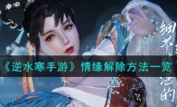 逆水寒是一款仙侠类手游,其中逆水寒手游情缘解除方法一览,逆水寒手游中有很多的玩法,其中很多人下行知道在游戏中如何去解除情缘关系?下面跟着小编一起来看看吧,希望对感兴趣的玩家有所帮助