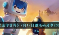 迷你世界是一款高度自由的休闲类3D沙盒游戏,游戏每日都会为我们带来游戏激活码,我们领取激活码之后就可以兑换奖励。下面小编给大家带来7月17日的激活码介绍,有需要的小伙伴一起来看看吧