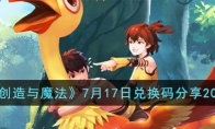 创造与魔法每天都有兑换码赠送给玩家,每天官方都会为各位玩家们带来最新的礼包兑换码,我们直接前往游戏中输入就能兑换相应的道具奖励了。下面小编给大家分享的是7月17日的兑换码,有需要的
