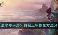 逆水寒手游中白狼王甲怎么修复呢?修复白狼王甲需要玩家先捡起7个札记,相信还有不少游戏玩家不清楚怎么修复,下面小编给大家分享一下白狼王甲的修复方法,有兴趣的小伙伴一起来看看吧,希望能