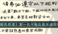 隐秘的档案第一关午夜出租车怎么通关?隐秘的档案这个游戏最近在抖音上非常火,这个游戏有很多恐怖的要素,很多小伙伴都游玩过了这款游戏,想必大家都对这关游戏有很多的额疑虑,就让小编来为大