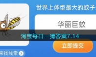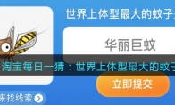 世界上体型最大的蚊子?正确答案是华丽巨蚊。淘宝大赢家活动是许多小伙伴每天都会参与的,通过参与淘宝大赢家活动进行答题,回答正确后就能领取到免费的红包奖励。2023淘宝大赢家7月14的