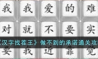 汉字找茬王是一款在抖音上非常热门的找茬小游戏,玩家们可以在游戏中体验到极致的解谜闯关乐趣,还可以锻炼自己的大脑哦。今天小编给大家带来的是游戏中做不到的承诺通关攻略,有兴趣的小伙伴一