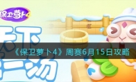 保卫萝卜4是一款国民休闲塔防游戏,2023年六月周赛关卡已经上线,6月15日的周赛关卡怎么过?开局直接建立一个三级雷达锁定如意,然后在如意的位置建一个三级手电筒锁定右上角的如意。下