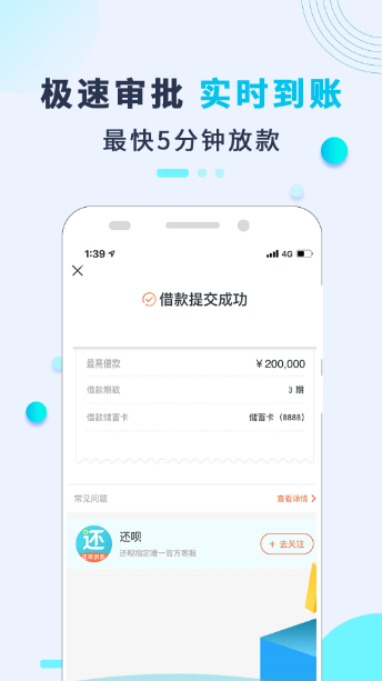 3、速度快:系统自动审批,审批通过后最快5分钟放款。