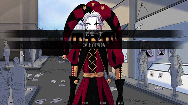 3、游戏采用视觉小说的模式,需要我们点击屏幕开始下一段对话,也可以点击“自动”。