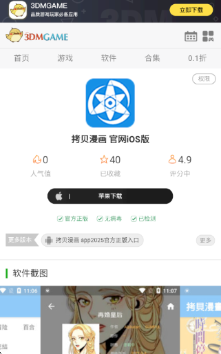 3dm手游网为您提供拷贝漫画 官网iOS版的 手机软件,欢迎大家记住本站网址,3dm手游网是您下载苹果手机软件app最好的网站!