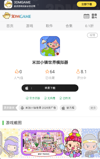 3dm手游网为您提供米加小镇世界模拟器的 手机游戏,欢迎大家记住本站网址,3dm手游网是您下载苹果手游app最好的网站!