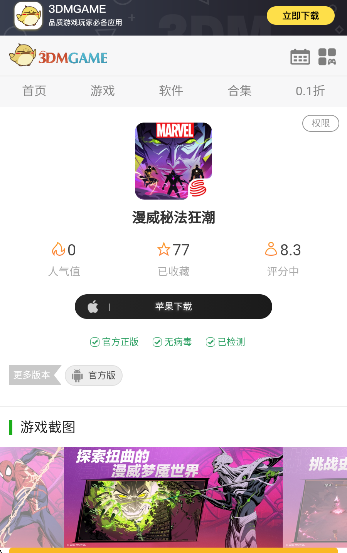 3dm手游网为您提供漫威秘法狂潮的 手机游戏,欢迎大家记住本站网址,3dm手游网是您下载苹果手游app最好的网站!
