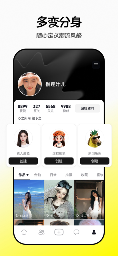 2、支持创建真人与虚拟形象,自由搭配风格,让你在虚拟世界中塑造独一无二的个性人设。