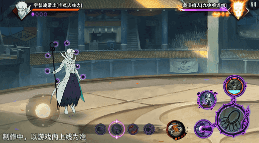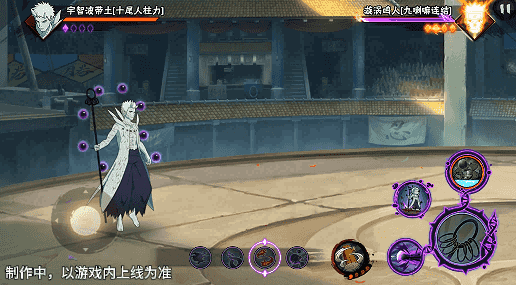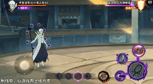 十尾带土可通过一技能划普攻、一技能划二技能、二技能一段对普攻进行强化,解锁强化后的普攻表现,被强化的普攻会在屏幕下方亮起图案。若当前光圈内的普攻段已经被强化,则自动强化下一段。