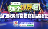 《微信游戏:加个好友吧》7月20日上线,热门游戏最强搭档挑战综艺来袭