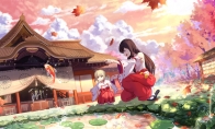 高悬的月亮预示着夜色已深,杏原辉煌的灯火照亮了半边的天空。礼花与舞乐交织相和,盛大华丽的歌舞祭正在热闹地进行时。不知道在什么时候出现的小妖怪们,嬉笑着穿梭在人潮中,沿街商店的吆喝声