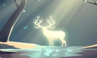 小男孩跌倒在了夜幕中的森林,一只雄壮的白色公鹿从参天巨树之后缓缓踱步走出,它雪一般的皮毛在月光的照耀下泛着乳白的光晕,巨大的鹿角也镀着一层薄薄的金光,宛若一顶世间绝无仅有的皇冠。在