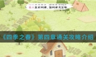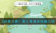 四季之春中的春怎么通关?有很多玩家在玩四季之春时不知道其中的春应该怎么通关,所以今天小编特地带来了四季之春中的春通关攻略,还不知道应该怎么过的小伙伴都快来一起看看吧。《四季之春》中的春通关攻略1:首先我们点击小桥下面的小鱼,这样我们能获得鱼尾,然后我们把鱼尾还有羽毛放在右侧的石像这里,等到他下雨;2:点击农夫我们可以获得树苗,接着我们把树苗拉到小女孩这里,小女孩就会自己走到农夫旁边了;3:这个小女孩在农民旁边可以获得爱心石头,我们把爱心的石头放到河里的怪兽石像这里可以完成了;4:整体的难度是不高的,如果你们不知道如何去通关春的话,可以参考小编的图片攻略。以上就是3DM小编整理带来的四季之春中的春通关攻略,更多相关游戏攻略,请关注3DM手游网!
