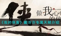 我的侠客手游中的戴泠泠是一名非常不错的角色,相信还有很多小伙伴不是很清楚戴泠泠专属天赋怎么样,下面是小编给大家带来的我的侠客戴泠泠专属天赋介绍,感兴趣的小伙伴一起来看看吧,希望能对你们有帮助。戴泠泠专属天赋介绍【专属天赋】 《龙魄护体》(基础/极/狂/化) 战斗开始时获得龙魄护体状态,使自身受到伤害降低(30%/40%/60%/90%),状态持续期间反击率降低100%,自身行动时移除此状态《龙甲精盾》(基础/极/狂/化) 提升精力*(50/50/100/150)点护盾上限,自身回合开始获得生命最大值*(5%/10%/10%/15%)的护盾(每场战斗最多生效2/2/3/3次)《万法归一》(基础/极/狂/化) 附加流血抗性(1/1/2/2)级;裂空拳伤害+(10%/20%/30%40%),在升级至《万法归一·化》时