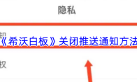 在希沃白板中关闭推送通知,可先打开应用并登录账号,进入首页后点击右下角“我的”进入个人中心,在个人中心页面找到并点击“设置”选项,进入设置界面后,点击“关于”,再点击“隐私”,找到“推送通知”选项并关闭其开关,即可停止接收推送通知。希沃白板怎么关闭推送通知?1、点击希沃白板APP我的界面设置。2、点击设置界面关于。3、点击倒数第二个隐私。4、在切换的界面点击推送通知关闭即可。以上就是小编带来的希沃白板怎么关闭推送通知?关闭推送通知方法,更多相关资讯教程,请关注3DM手游网。