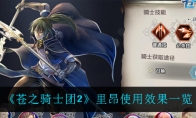 在苍之骑士团2中很多小伙伴都很想知道游戏中的斩职业骑士ssr里昂的强度怎么样,今天小编给大家带来了《苍之骑士团2》里昂使用效果一览。感兴趣的小伙伴一起来看看吧,希望可以帮助到大家。《苍之骑士团2》里昂使用效果一览1、斩职业骑士ssr,输出也极其高,一般开局别先用他,先让其他骑士输出,在让他收场。普通技,攻击范围也是三角形不过这次是倒的,区域目标造成攻击70%的物流伤害,注意残血!这样可以打的更多。2、必杀技,攻击范围就一点,不过伤害高,对目标造成攻击180%的物理伤害,而且攻击时,目标每带1个负面效果,都会给自身暴击率提高20%无上限,这样针对那些有负面效果的敌人,暴击就打出来了。3、被动:击杀任意目标时,还能对当前生命最低的敌方进行额外攻击,造成的伤害是本次溢出伤害的40%的物理伤害,要是你在这次额外攻击又击