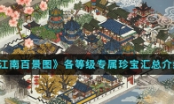 在江南百景图手游中各等级专属珍宝有哪些呢?游戏中的珍宝有很多,不同等级的人物都有专属的珍宝,那么想知道各等级专属珍宝汇总的就跟随小编一起来看看吧。各等级专属珍宝汇总介绍:以上就是小编整理的江南百景图各等级专属珍宝汇总介绍,想知道更多相关资讯攻略的请关注3DM手游网。
