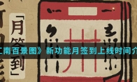 在江南百景图手游中新功能月签到什么时候上线呢?新功能月签到上线,有了这个签到功能可以领取额外好礼,那么具体什么时候上线呢?想知道新功能月签到上线时间的就跟随小编一起来看看吧。新功能月签到上线时间介绍:1、新功能月签到将于12月1日 0:00正式开启,奖励内容将于每月1日0:00更新。2、大人们每日签到均能获得奖励,累计签到达到7天、15天、25天还会获得额外好礼。以上就是小编整理的江南百景图新功能月签到上线时间介绍,想知道更多相关资讯攻略的请关注3DM手游网。