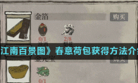 《江南百景图》游戏中春意荷包怎么获得?江南百景图苏州府第二章已经正式上线了,其中春意荷包很多小伙伴表示不知道怎么获得,那么接下来小编为大家带来《江南百景图》春意荷包获得方法介绍,一起来看看吧。 《江南百景图》春意荷包获得方法介绍一、获得方法1、玩家可以在惬意的金仔的店兑换获得。二、花费梨花*10,山茶花*10,桃花*10梨花:砍梨花树获得;山茶花:砍山茶花丛获得;桃花:砍桃花获得。 以上就是小编整理的关于《江南百景图》春意荷包获得方法介绍的全部内容,更多游戏攻略请持续关注3DM手游网!