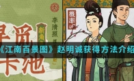 在江南百景图手游中赵明诚怎么得呢?赵明诚是游戏中中秋的最新上新角色,那么具体该怎么去获得这个新角色呢?想知道赵明诚获得方法的就跟随小编一起来看看吧。 《江南百景图》中秋活动汇总介绍 广寒宫上线时间 广寒宫获得方法 赏中秋登录奖励 中秋新角色介绍 赵明诚上线时间 赵明诚获得方法 赏月园上线时间 赏月园作用 赵明诚获得方法介绍: 一、获得方法 【寻觅】卡池UP天级角色【李清照】&侯级新角色【赵明诚】共同进入【寻觅】卡池。活动期间【李清照】、【赵明诚】概率UP,活动结束后新角色【赵明诚】将进入【精英】卡池。二、上线时间 9月29日13:00—10月8日23:59 三、人物介绍 名字:赵明诚等级:候级角色擅长:建造四、背景故事 赵明诚(1081年—1129年),字德甫(一作德父),山东诸城龙都街道兰家村人,北宋