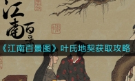 江南百景图叶氏地契怎么获取?《江南百景图》游戏中叶氏地契很多玩家不知道从哪里获取,那么今天小编就给大家介绍一下江南百景图叶氏地契获取攻略,有需要的小伙伴不要错过了。《江南百景图》叶氏地契获取攻略叶氏地契:要和徽商交易50次,然后还有建笔墨纸砚的,各生产10次交易次数达到一定的时候才会获得叶氏地契做主线任务,后面会刷新这个任务,给地契 以上就是《江南百景图》叶氏地契获取攻略,更多游戏攻略请持续关注3DM手游网!