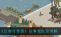 江南百景图最近新上线了议事堂玩法,很多小伙伴都很想知道这个议事堂具体应该怎么玩,今天小编给大家带来了《江南百景图》议事堂玩法详解,感兴趣的小伙伴一起来看看吧,希望可以帮助到大家。《江南百景图》议事堂玩法详解1、徽商交易场所,每个家族最多存在4个商人,均以家族为单位,徽商死后需要消耗银子安葬。2、每个家族建议垄断两种物资,普通物资以及专属物资各一种,其中专属物资按照各大家族特长选择。例如:汪氏做汪笔,就垄断汪笔。3、经商:可分为四挡,和杭州府商栈交易类似,需要物资、徽商,议事堂无需升级,根据家祠等级而自动调整。一级:一个商人,交易所需一个商人,物资分200、500、800、1000。交易时间分别为1.5h、3.5h、5.5h、6.5h。交易完成获得铜钱、银子、金箔。二级:两个商人,交易可一次使用两个商人,也可分开