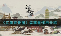 江南百景图议事堂有什么用?在游戏内很多玩家都想知道,议事堂建筑的作用是什么。接下来就让小编给大家带来《江南百景图》议事堂作用介绍,感兴趣的小伙伴们一起来看看吧。《江南百景图》议事堂作用介绍议事堂作用: 议事堂:查看家族经商情况,开启徽商经营玩法。1、议事堂必须建在家祠范围内才可生效,每个家族只可拥有一座议事堂。2、点击[培养徽商]可以培养家族的徽商,和徽商进行交易。3、初始可以委托四种普通资源(竹子、茶叶、桐油、生漆)给徽商家族贩卖,若该家族垄断了普通资源,可以解锁更高等级的徽州特色资源。4、当某种资源的销售量在市场上的占有率达到90%,则家族垄断该资源。若要查看某种资源的占有量, 点击"市场占有率"旁边的红色问号即可查看。选好每个家族需要买的资源,就不要随意退出市场了。5、每个家族需要持续贩卖与其他家族不同的