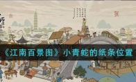 江南百景图小青蛇的纸条在哪?在游戏内很多玩家都想知道,小青蛇的纸条在哪里可以找到。下面就让小编给大家带来《江南百景图》小青蛇的纸条位置,感兴趣的玩家一起来看看吧。 《江南百景图》小青蛇的纸条位置在新出的杭州探险第三章旧事小蛮当中,最后玩家还需要破解小青蛇的纸条,这个又涉及到了解密和根据提示需要正确位置的玩法,但是有许多玩家都还不知道该如何完成。1、第一张纸条→[桂海寻孤] 2、第二张纸条→[舞塘垂钓] 3、第三张纸条→[闹市孤萤] 4、第四张纸条→[高山访阁] 5、第五张纸条→[一二]望守独中之纷缤,路指三头桥伞缀(退步原来是向前,倒着读的意思)缀伞桥头三指路缤纷之中独守望 如果对探险比较抗拒的朋友们,可以每天只做一点,毕竟探险一个月就出一回,一次性做完了就没了,而且也会特别累。肝帝就随意了 ,整个探险做下来大